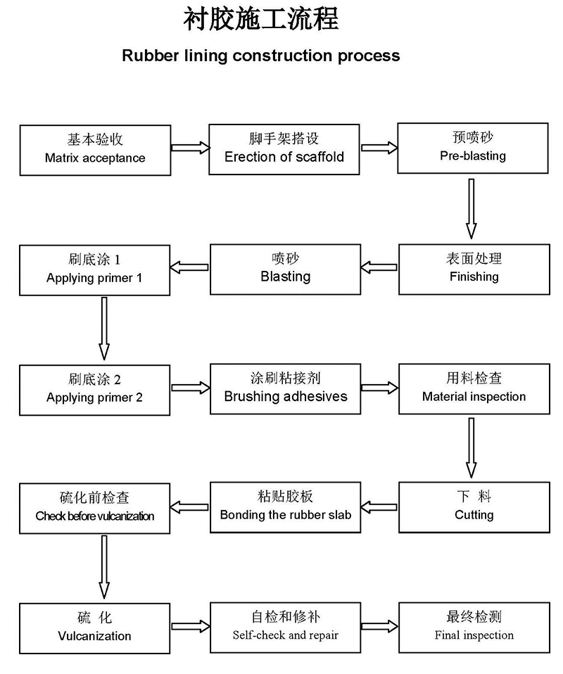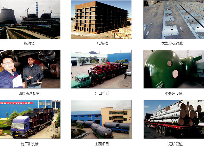 橡膠襯里廣泛應(yīng)用于石油、化工、化肥、冶金、電力、食品、醫(yī)藥及水處理業(yè)等。 具有防護(hù)金屬或其他基體免受各種介質(zhì)侵蝕的能力。 橡膠襯里不僅能耐受酸、堿、鹽及各種有機(jī)物的腐蝕,而且具有良好的綜合性能,如彈性、耐磨性、抗沖擊性及優(yōu)良的粘合性能。 本公司具有防腐蝕工程設(shè)備的整體設(shè)計(jì)制造及配套的技術(shù)生產(chǎn)能力。 并且獲得了國(guó)家相關(guān)部門頒發(fā)的資質(zhì)證書。